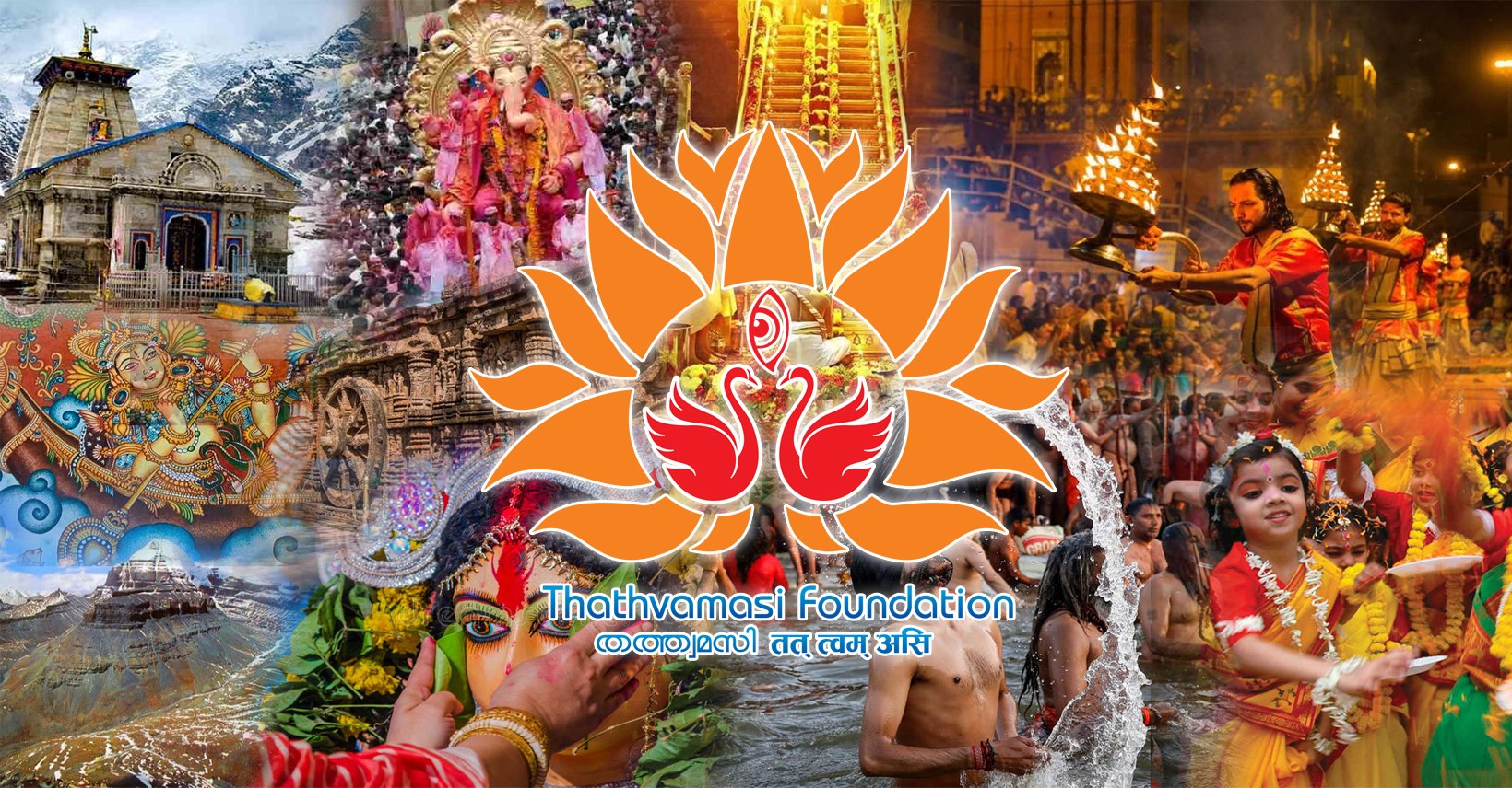 The Thathvamasi Foundation is a Mumbai based charitable trust established with the good intention of spreading the universal and transcendental light of Sanatana Dharma all over the world, embodying the great spiritual beauty of Indian heritage. The foundation concentrates on a nine point action plan for its activities and among them two of the targets can be achieved through TheerthYatra.com. They are related to pilgrimage and travel and explained below.